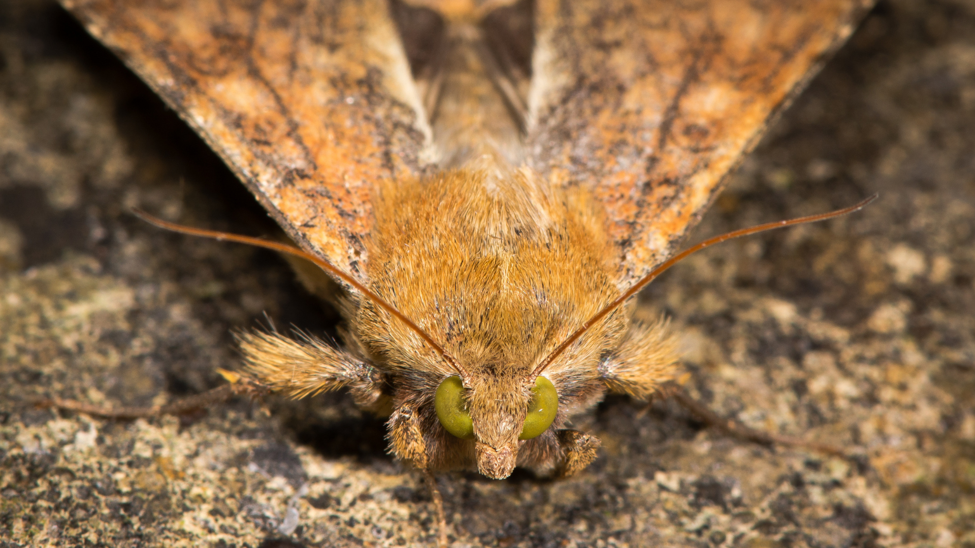Les femelles sont brun-orangé et les mâles gris-vert et plus petits. Les ailles antérieures des deux sexes sont couleur crème avec une bande extérieure brun foncé le long de la bordure externe.